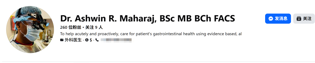 他的个人介绍中说自己拥有理学学士(BSc)与英联邦体系医学学位(MB BCh),并被美国外科学院列为院士(FACS)。