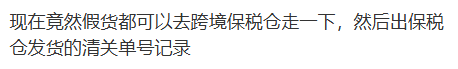 有网友称,现在假货都可以去跨境保税仓走一下,然后出保税仓发货的清关单号记录。