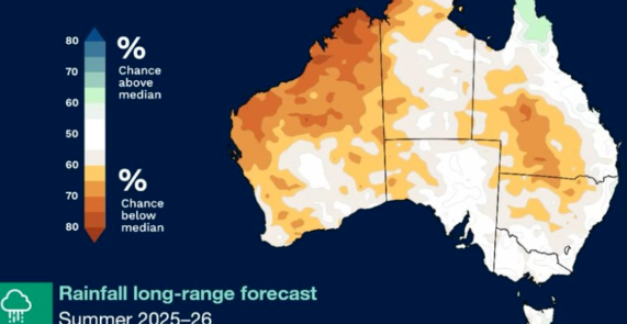 根据该局发布的 2025–26 年季节性气候预测,西澳部分地区以及东部内陆地区可能出现降雨偏少的情况,干燥天气或将持续。