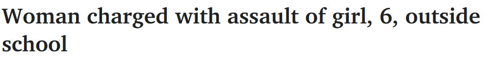 据警方称,周一上午约8点50分,一名35岁女子在一所教育机构外袭击了一名与其相识的6岁女童。