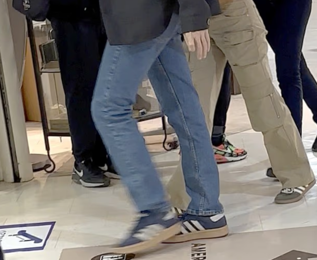 两人还十分默契地穿着情侣鞋,路人都能感受到这对情侣之间火热的氛围。