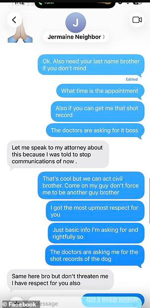 过去几周,亚历克斯频频在社交媒体上表达愤怒。他晒出与邻居的短信截图,指控对方曾承诺会将狗安乐死,之后却反悔。