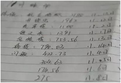 在女儿的遗物中,父亲发现了女儿手写的账单,那是她每个月需要还各个贷款平台的钱,而最终她的支付宝上面只剩下7块钱,银行卡里面只剩1块钱。