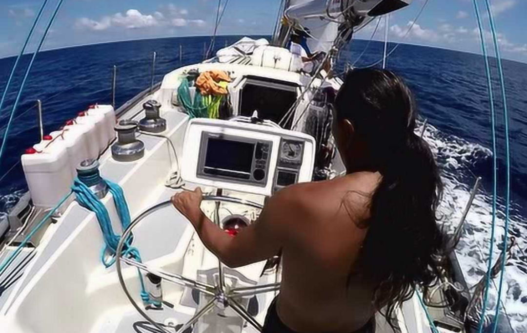 由于翟墨那时还不会驾驶帆船,只能请上一任船主帮忙送船。