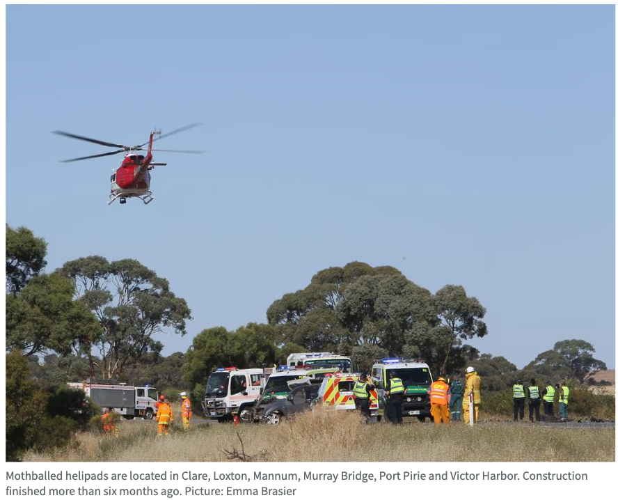 由于停机坪无法使用,救援直升机目前被迫转降区域机场或当地运动场,延误了将危重患者转送至阿德莱德大型医院的时间。