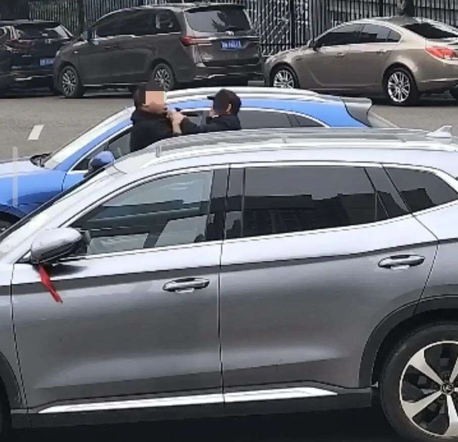 男子在车旁抽烟时,一名保安赶来与其理论并发生抓扯。在保安呼叫增援时,男子挣脱驾车逃离现场。