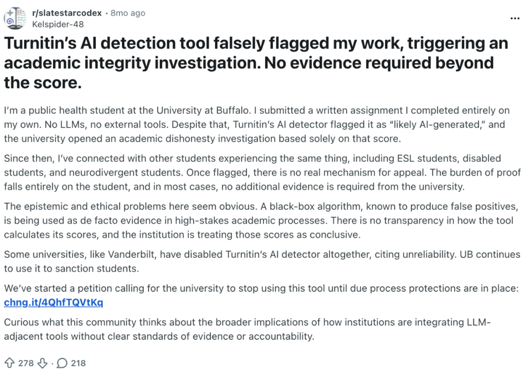 类似事件在北美多个高校出现。在 Reddit、Quora、学校申诉板块里,常能看到这样的倾诉:
