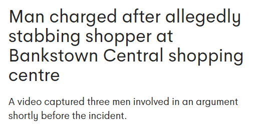 周六下午,悉尼西部Bankstown Central购物中心内发生一起持刀伤人案件,现场一度陷入混乱。