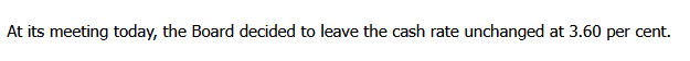 据澳联储(RBA)今日发布的公告,2025年的最后一次利率决议中,澳联储董事会决定维持现有的3.6%现金利率不变。