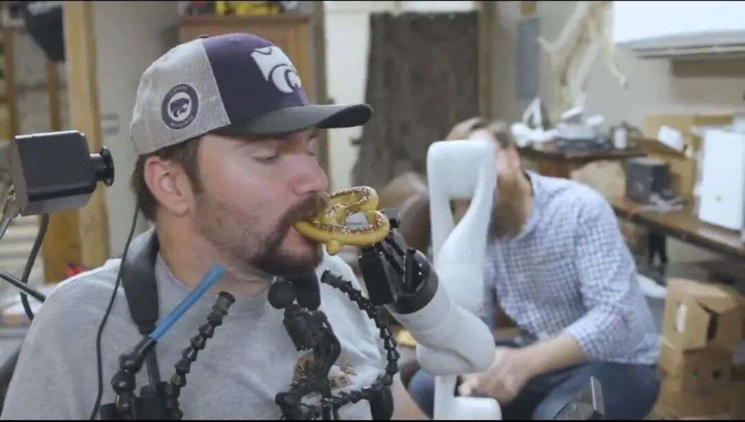 在社交媒体平台上发布的一段视频中,2006年因受伤导致颈部以下瘫痪的洛基·斯托滕堡展示了产品效果。画面显示,他仅凭意念控制一只机械臂,将食物送入自己口中。此前,他必须依赖嘴控器才能进行电子游戏等操作。