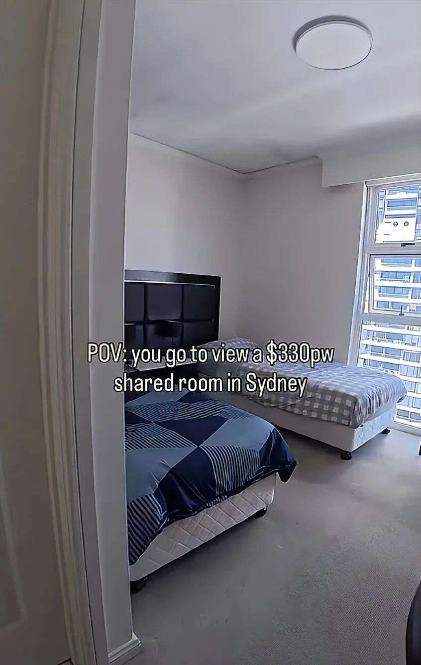 上周,他看了一处位于乔治街高层公寓的共享房间,这段视频令网友瞠目结舌——330澳元/周的租金竟只能租到一个与另一名男子同住的单人床位。