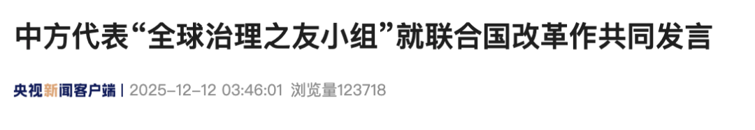 中方代表“全球治理之友小组”就联合国改革作共同发言