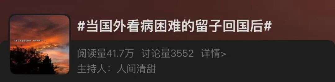 最近#当国外看病困难的留子回国后#的词条也是冲上了微博热搜。