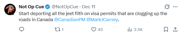 “开始把那些持签证的肮脏分子全都驱逐出去,他们把加拿大的道路都堵塞了。”