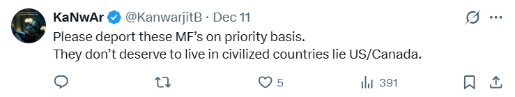“请优先遣返这些混蛋。他们不配生活在像美国/加拿大这样的文明国家。”