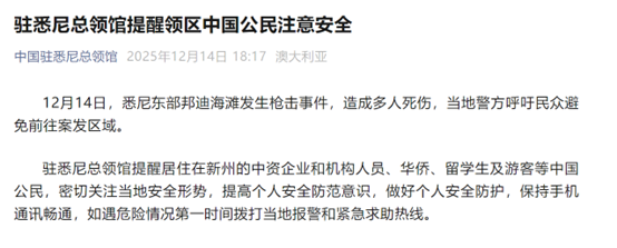 中国驻悉尼总领馆紧急发声,提示领区中国公民注意安全。