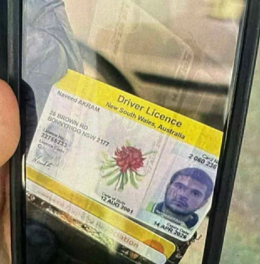 有民众说在案发现场捡到了此人的证件,上面的名字是Naveed Akram,现年24岁。