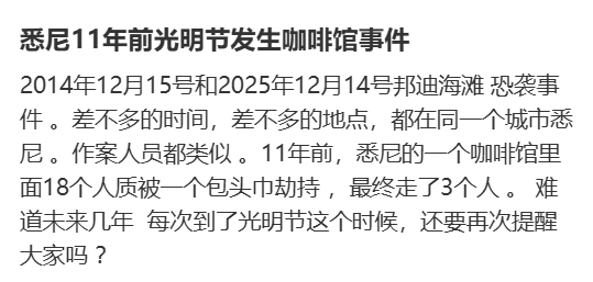 这次的事件,让不少人联想到了十年前悉尼的另一次恐怖袭击。