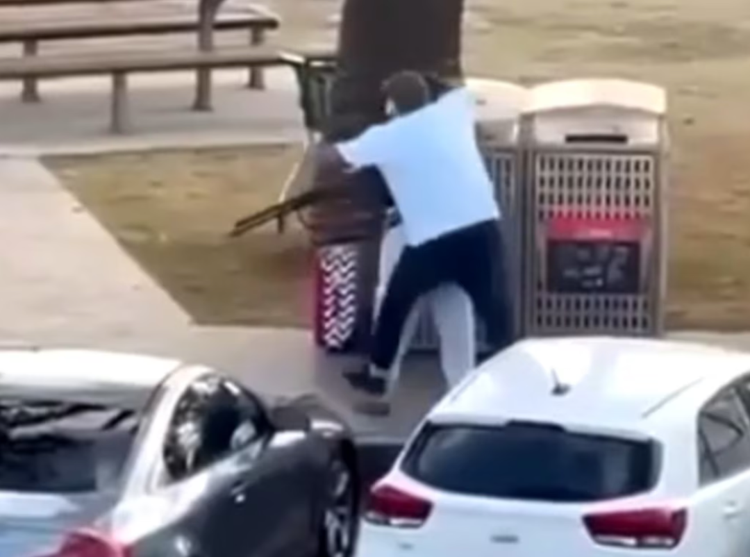 枪手失去武器,倒在地上,随后仓皇逃离。