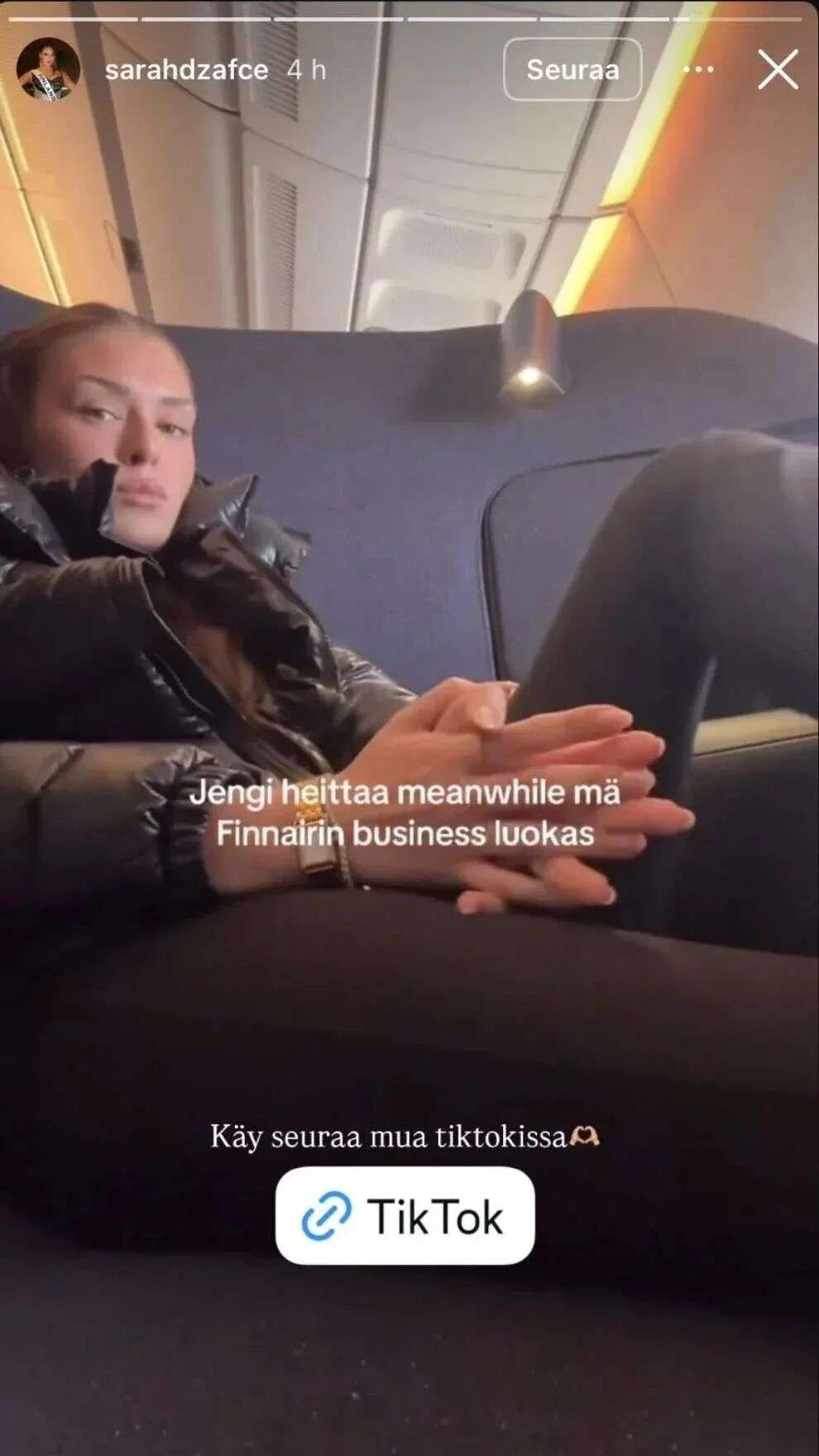 很快她又做了另一个愚蠢的举动,发贴说自己正乘坐飞机前往迪拜,配文“别人在指责我,而我正坐在芬兰航空的商务舱里”,并面露不屑的表情,就差把“你奈我何”写在脸上,明晃晃的挑衅。