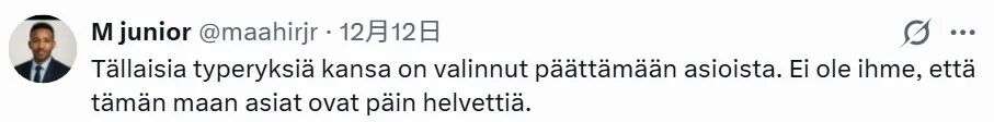 Dzafce的个人行为,连带着把芬兰政府也扯入了种族主义丑闻,这些人妄想羞辱他人,反倒让自己在全世界面前丢脸……