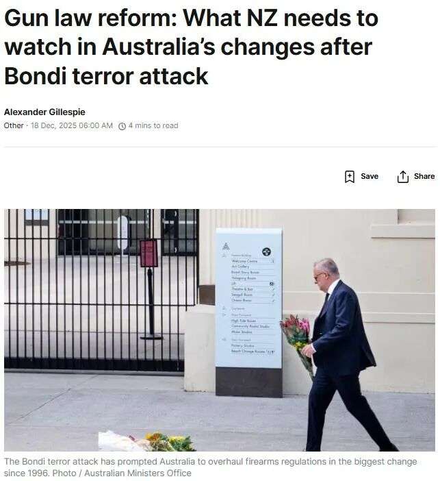 收藏当“合法枪支”仍能制造惨案:悉尼恐袭案对新西兰的警告!