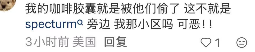 “我的咖啡胶囊就是被他们偷了,这不就是specturma旁边,我那小区吗?可恶!!”