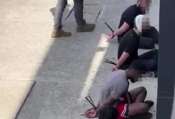 不少人都看到了荷枪实弹全副武装的反恐警察维持秩序,也看到了有多名男子被反绑双手当场被逮捕。还有人透露,现场那辆车头已经被撞击凹陷的白色轿车,挂着维州的车牌!