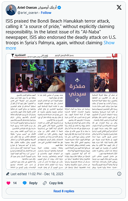 ISIS虽然没有宣称对Bondi恐怖袭击负责,但是却公开威胁:要发动更多袭击事件!