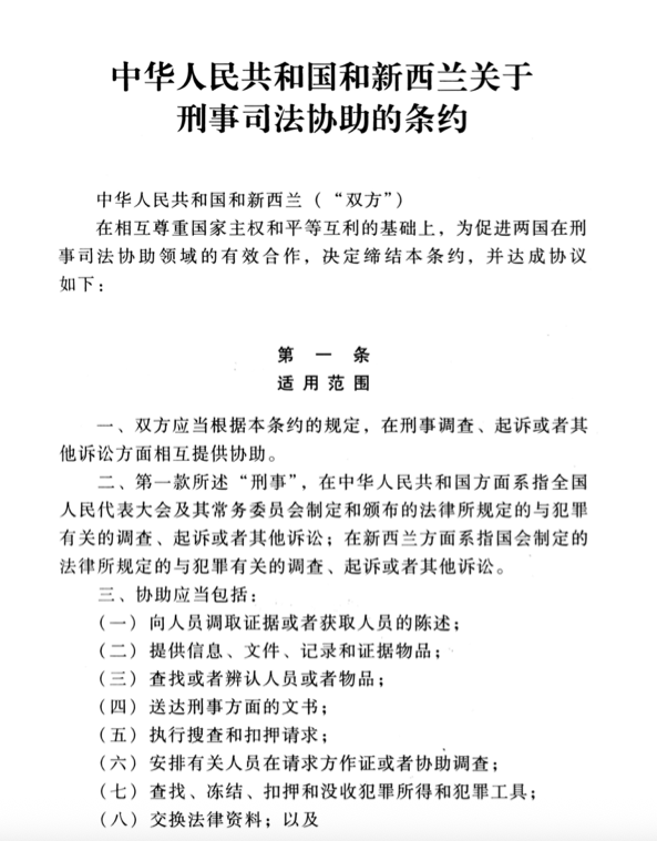 因为两国之间无引渡条约,双方的合作只能在《新西兰与中华人民共和国刑事司法互助条约》框架内进行的,并通过“在平等互利的基础上开展务实的警务和司法合作”来实现。