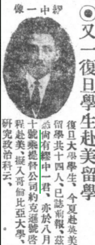 缪中一虽是复旦大学高材生,但并未被庚款留学计划选中。