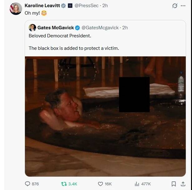 以及克林顿与一名脸部涂黑的女子同乘飞机、或克林顿与另一名女性泡在热水浴缸中的照片。