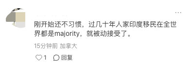 “刚开始还不习惯,过几十年人家印度移民在全世界都是majority,就被动接受了。”