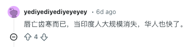 “唇亡齿寒而已,当印度人大规模消失,华人也快了。”