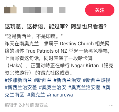 就在昨天,一名华人网友在小红书发帖:新西兰本地人开始公然抵制印度移民了。