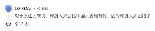 “对于原住民来说,印度人只会比中国人更难对付,因为印度人太团结了。”