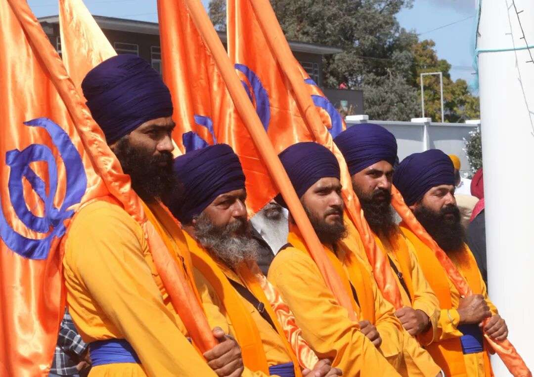而他们正对着的,是正在举行Nagar Kirtan(印度锡克教宗教游行)的锡克社区。