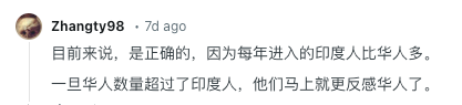 “目前来说,是正确的,因为每年进入的印度人比华人多。一旦华人数量超过了印度人,他们马上就更反感华人了。”