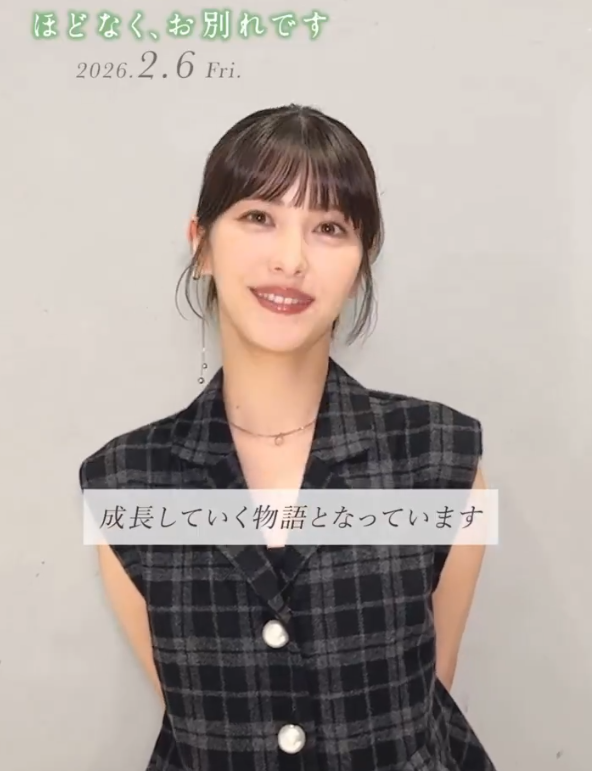 宣发视频中,25岁的滨边美波身着黑色格纹无袖上衣,直视镜头,语气平稳地介绍自己饰演的角色。