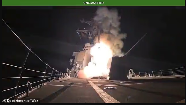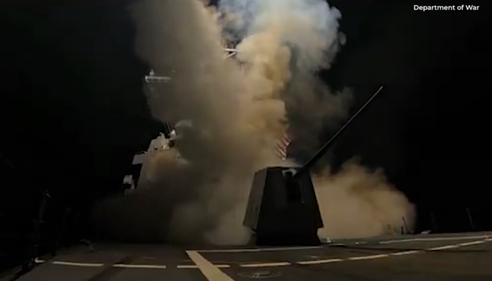 美国国防部还公布了一段视频,画面显示至少一枚导弹从美军军舰发射。