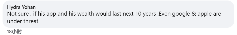 “谁能保证他的资产能撑过10年呢, 毕竟连谷歌、苹果这种巨头都险象环生的!”