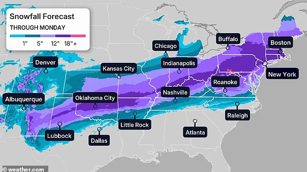 预报显示:华盛顿DC、费城、纽约、波士顿可能迎来极端降雪,I-95 沿线主要城市积雪可能达到1英尺或更多。气象部门表示,这些大城市遭遇正面冲击的可能性正在上升。