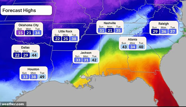 根据预报,这场风暴将周五从南落基山脉开始,向东推进,覆盖南部平原、俄克拉荷马州与德州,周五夜间进入阿肯色州与田纳西州,周六上午冲击中西部,周六夜间扩散至阿拉巴马州、卡罗莱纳州与乔治亚州,周日抵达新英格兰,周一在东北部逐步减弱。