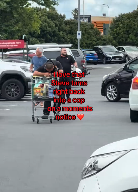 一名疑似窃贼试图推着装满商品的购物车逃离,和美国人的态度不一样的是,许多新西兰人追了上去,她形容这一幕“非常酷”