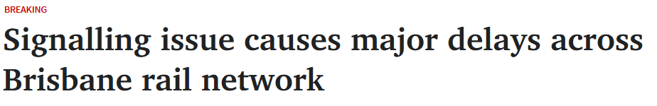 昆州铁路公司报告称,故障于布里斯班北部Carseldine区域发生,导致Caboolture线、Redcliffe Peninsula线及Sunshine Coast线列车延误超过60分钟。