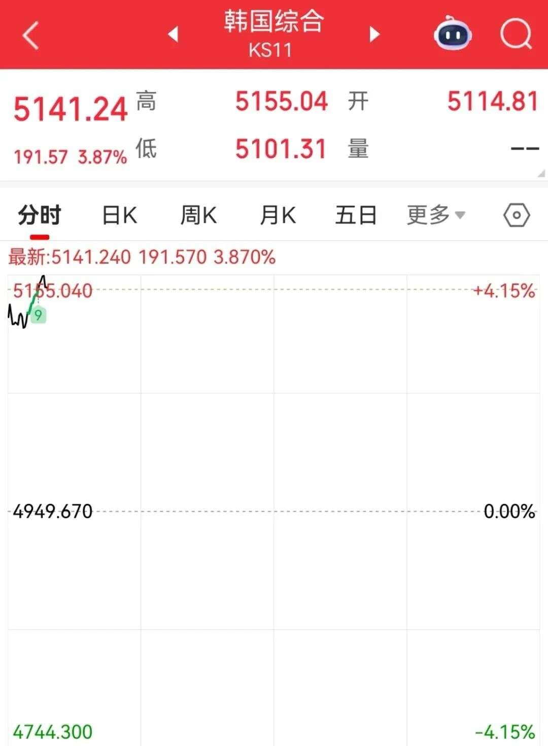 日韩股市也大幅反弹,截至发稿,日经指数涨2.43%,韩国综合指数涨3.78%。