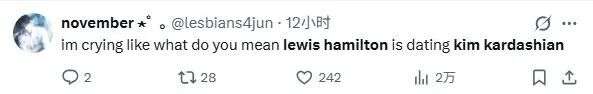 “我哭了,刘易斯·汉密尔顿正在和金·卡戴珊约会是什么意思啊?”