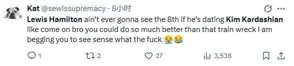 有意思的是,当媒体传出汉密尔顿正在和金·卡戴珊约会的消息之后,最先破防的居然是汉密尔顿的事业粉。