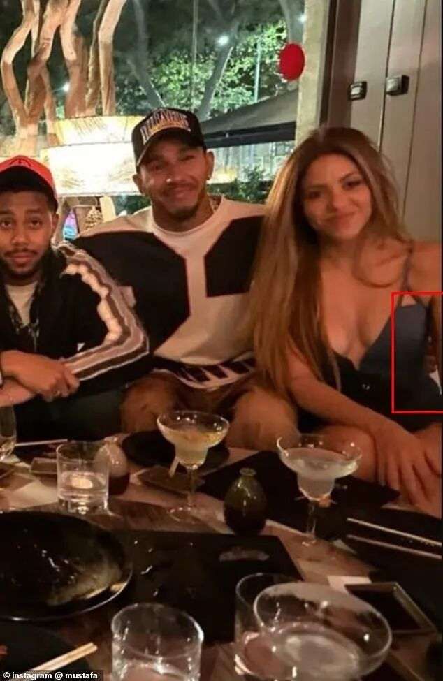 (汉密尔顿被拍到搂着夏奇拉的腰)