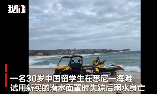 2月3日,一名30岁中国留学生在悉尼一海滩试用新买的潜水面罩时失踪后溺水身亡。